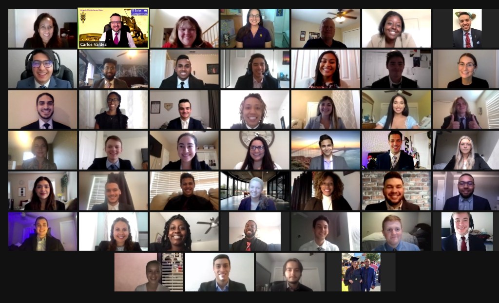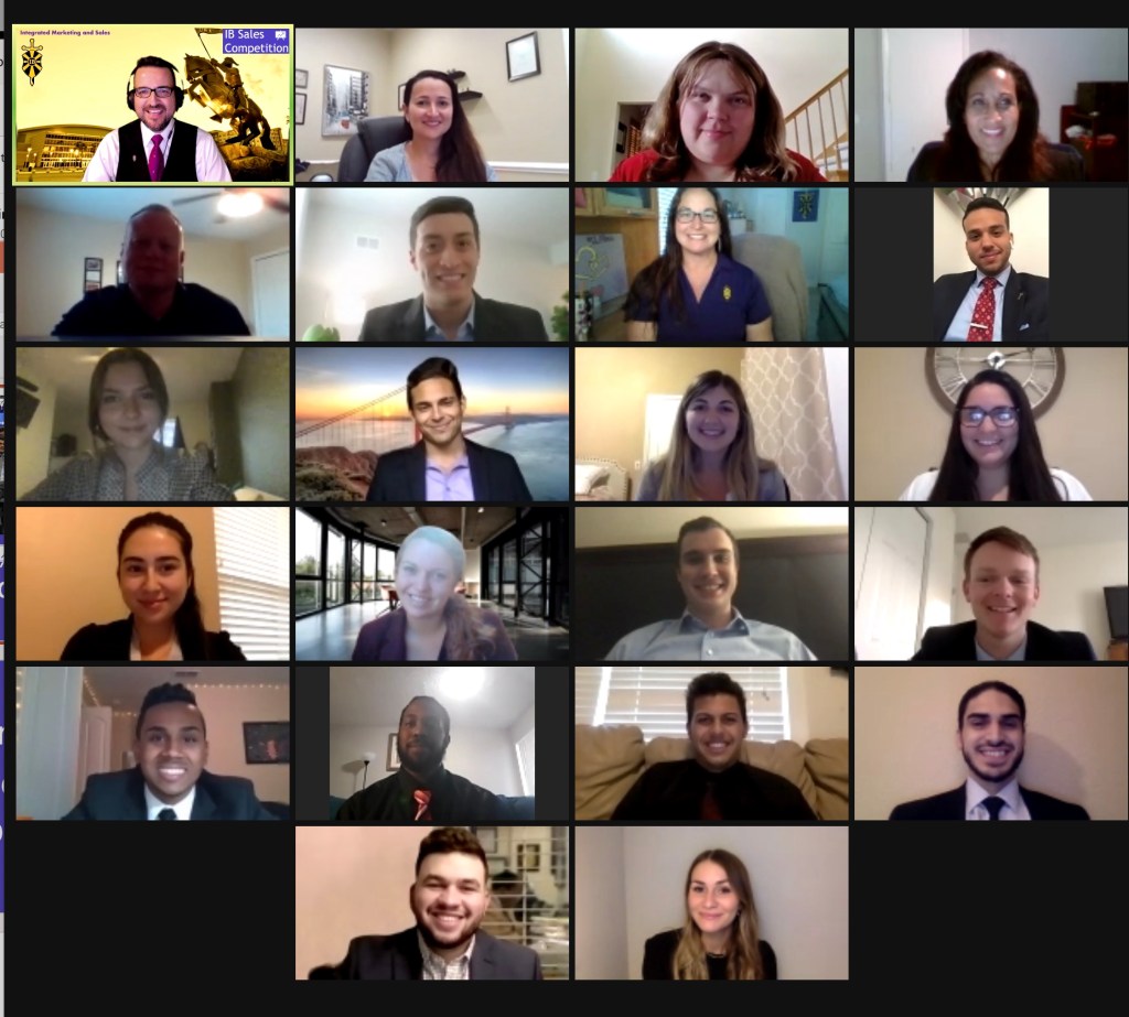 The IB Sales Competition took place on Friday, April 23rd, from 4 to 7 pm virtually on Zoom with IB Students, IB Alumni, IB Faculty, College Leadership, IB Advisory Board Members, and Senior Sales Executives.