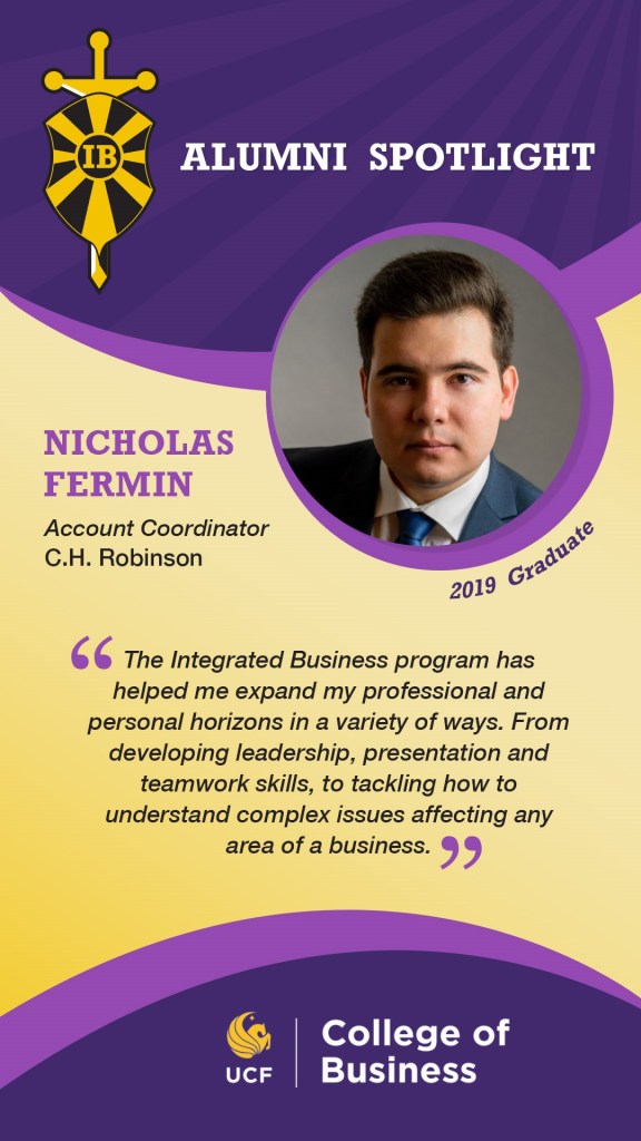 Posted October 11, 2022 by integratedbusinessblog Alumni IB Alumni Spotlight: Nicholas Fermin CategoriesAlumniShare this: Share on Facebook (Opens in new window) Facebook Share on X (Opens in new window) X Share on LinkedIn (Opens in new window) LinkedIn Email a link to a friend (Opens in new window) Email Related integratedbusinessblog View All