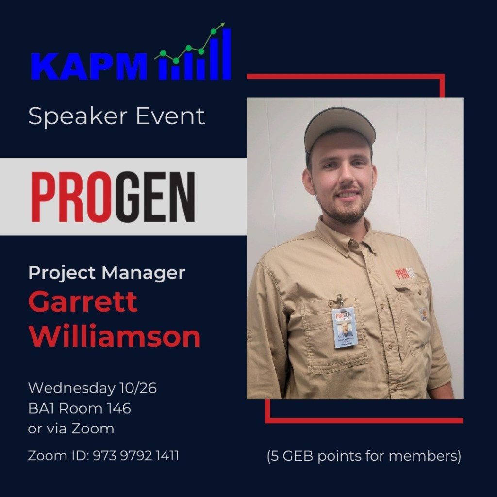 KAPM will be hosting ProGen at their meeting on Wednesday, October 26th at 4:30 pm in BA 1 Room 146 (in person) or you may attend via Zoom!