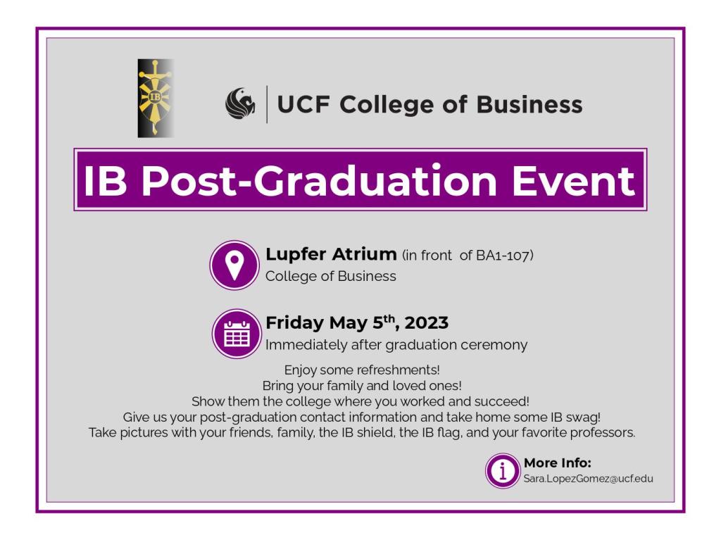 Posted April 19, 2023 by integratedbusinessblog IB Graduation Reception Graduating Spring 2023? CategoriesIB Graduation ReceptionShare this: Click to share on Facebook (Opens in new window) Facebook Click to share on X (Opens in new window) X Click to share on LinkedIn (Opens in new window) LinkedIn Click to email a link to a friend (Opens in new window) Email Related integratedbusinessblog View All