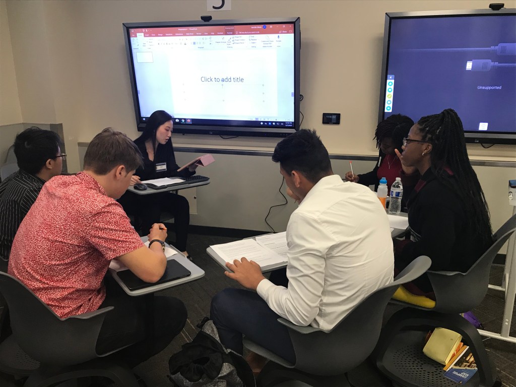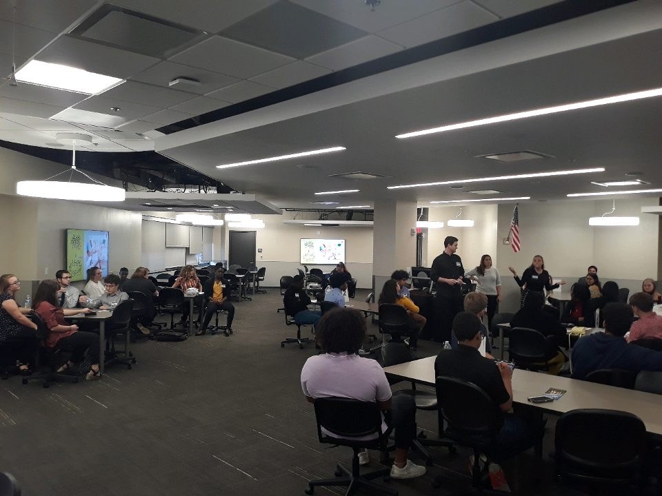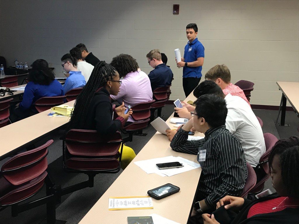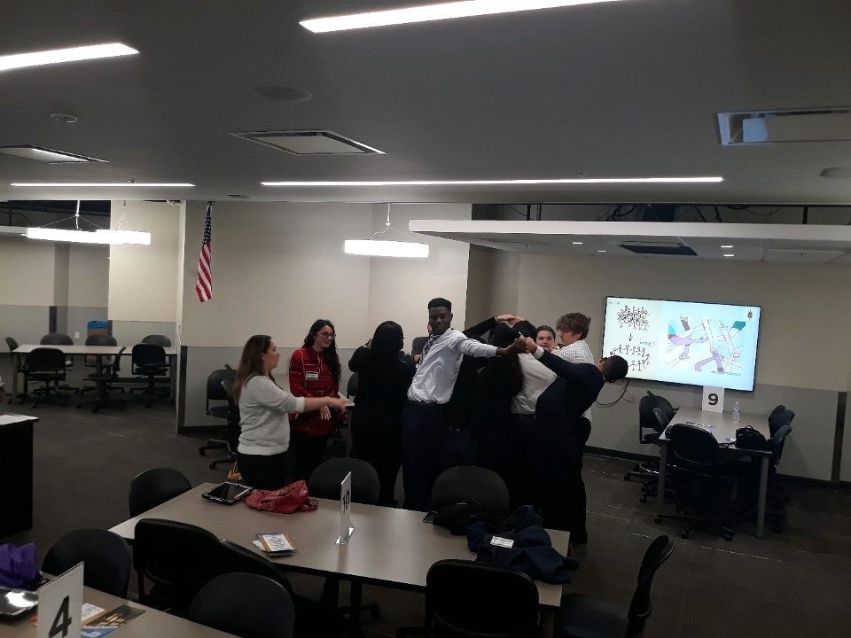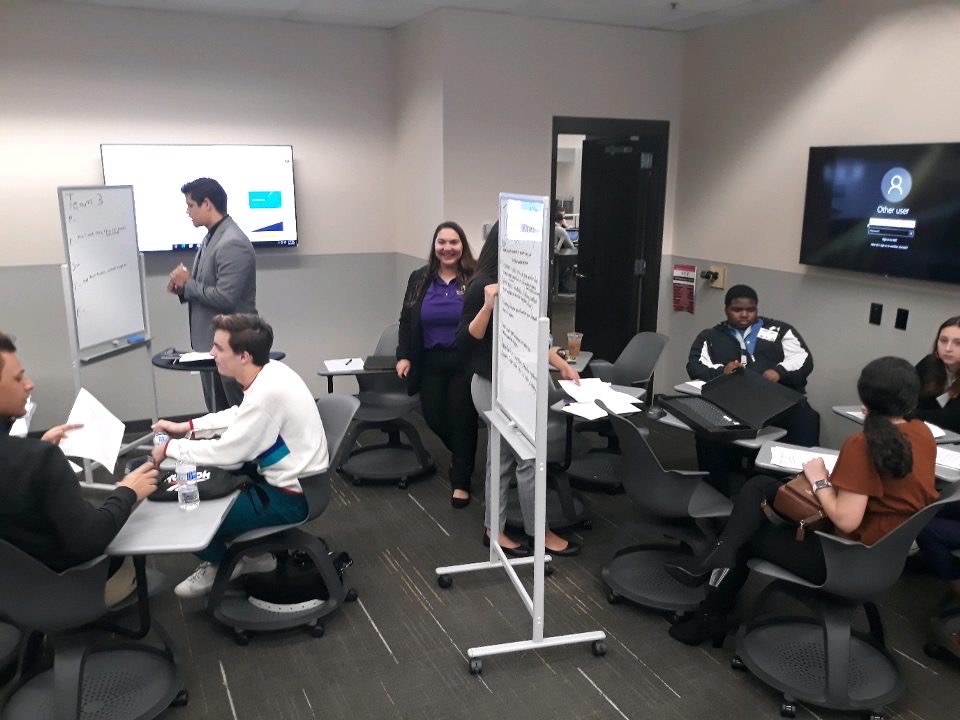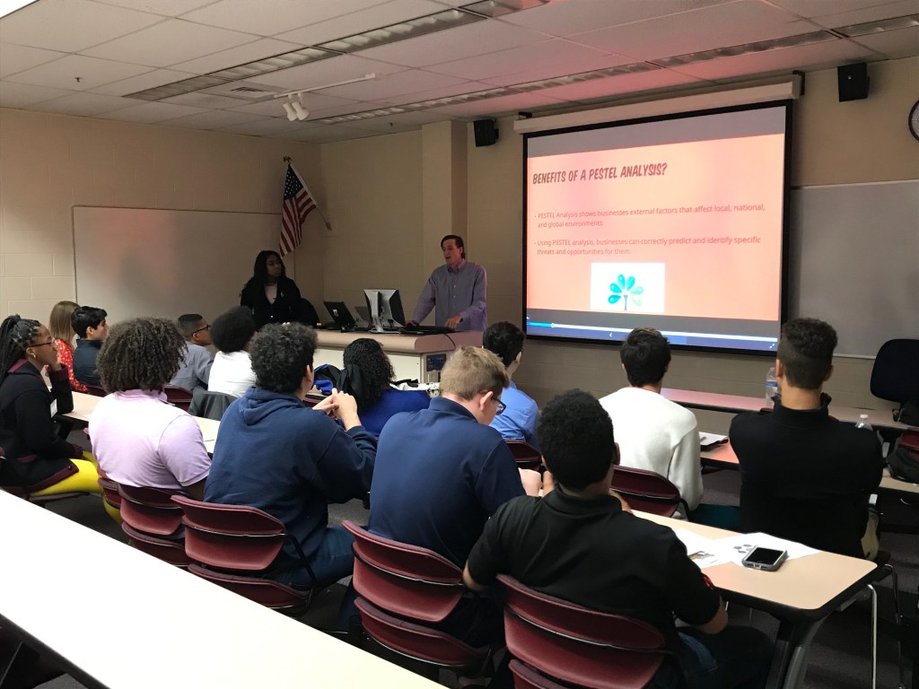 On Friday, February 7th Integrated Business hosted 54 students from 5 area high schools in a day of skill building and competition. High school students were assigned to teams with students from other schools. The teams spent the morning getting to know each other through team building exercises and learning about marketing, PESTLE analysis, and presentation strategies from some of our Integrated Business student trainers. After lunch, the teams were given 2 ½ hours to put together a presentation drawing upon what they learned in the morning to propose solutions to a business case. The high school teams were assisted by Integrated Business student coaches. The teams presented their recommendations to panels of Integrated Business faculty and alumni.